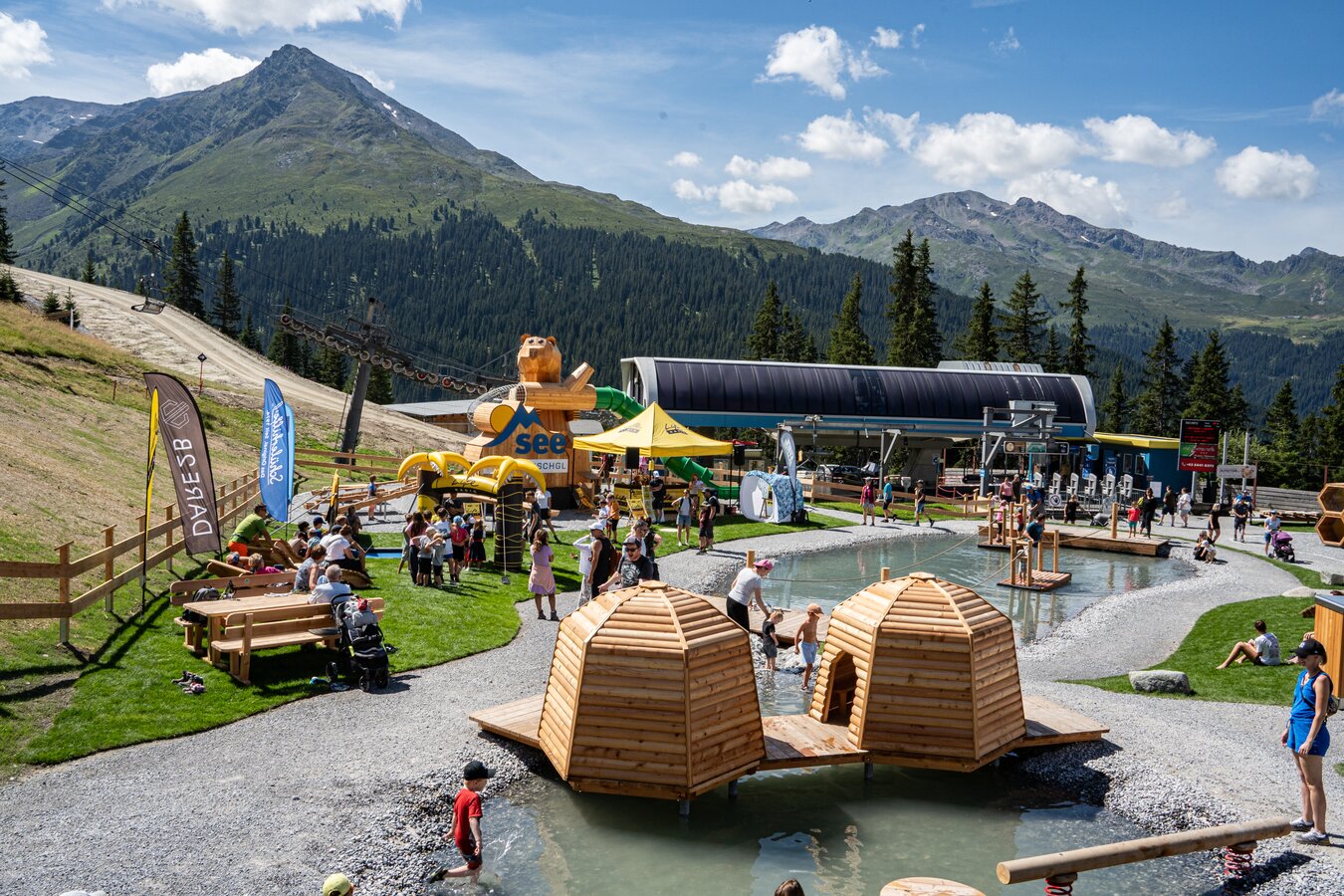 Der Abenteuerpark auf der Idalp in Ischgl bietet aufregende Wasser- und Spielstationen, die Natur und Spielspaß kombinieren. Kinder können hier durch kleine Bäche stapfen, über Stege balancieren und die umliegende Bergwelt entdecken. Ein echtes Naturerlebnis für die ganze Familie!