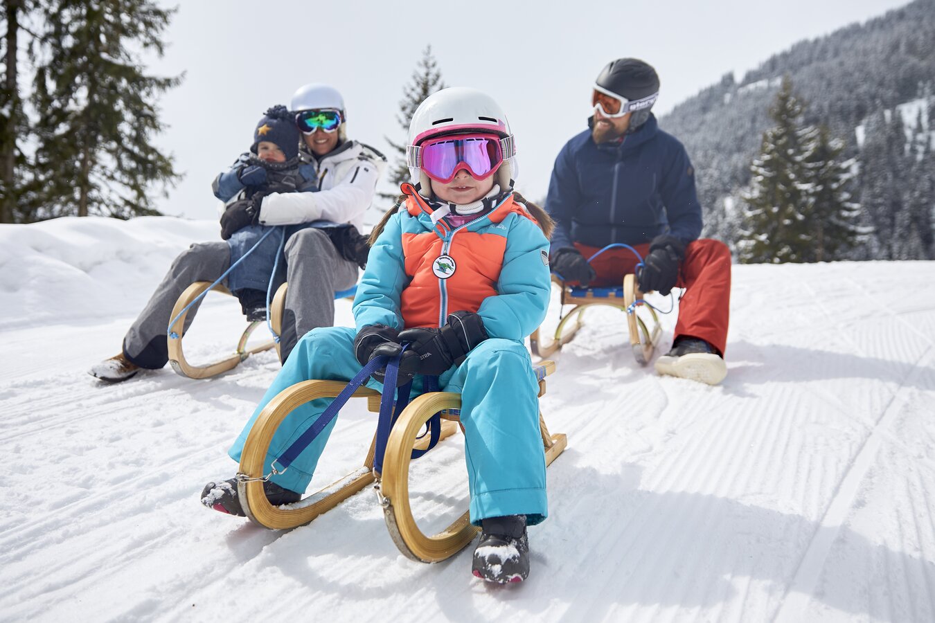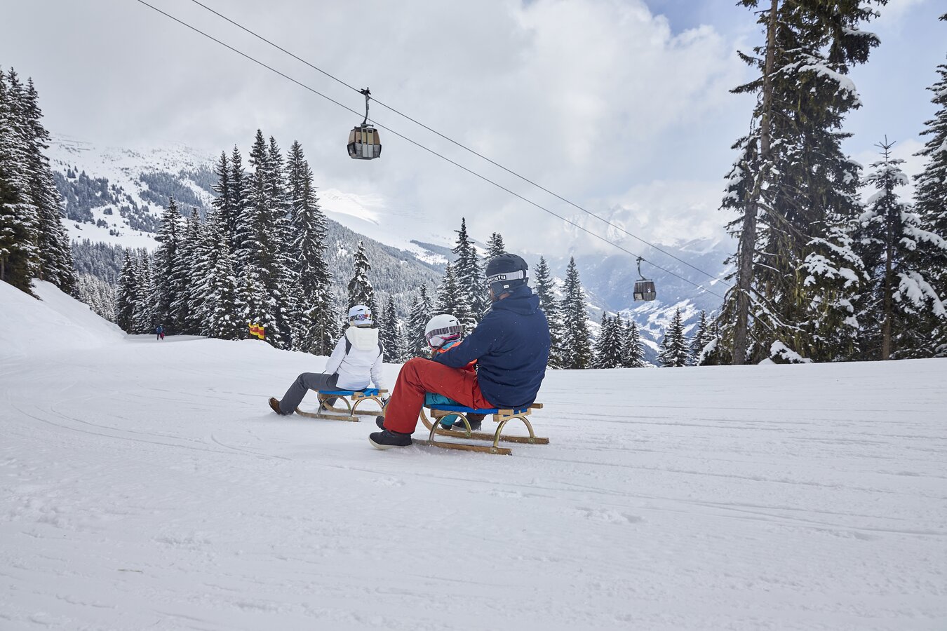 Kufen geht's auf der sechs Kilometer langen Rodelbahn von der Bergstation Diasbahn mit Speed ins Tal hinunter. Eine Rodelpartie ist ein sportlicher Hit für die ganze Familie – sowohl tagsüber als auch nachts bei Scheinwerferlicht.