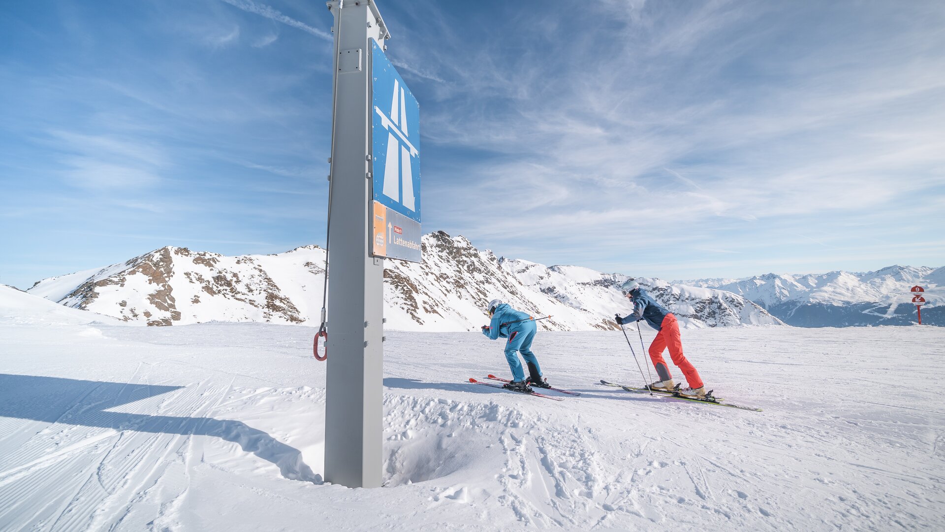Take the four-seater chairlift up to the starting point of the challenging Lattenabfahrt run at 2,690 metres above sea level at Alblittkopf. The red slope is the perfect challenge for advanced skiers. The eight-kilometre-long, varied ski run requires technique and good stamina.