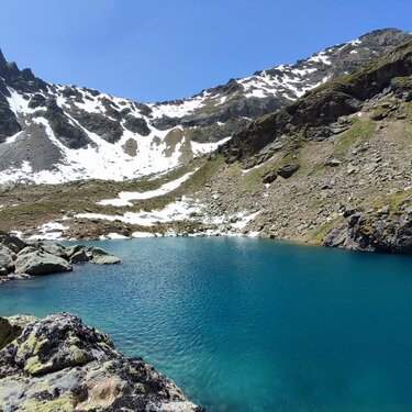 crystal-clear, turquoise water, set amidst a breathtaking mountain backdrop.